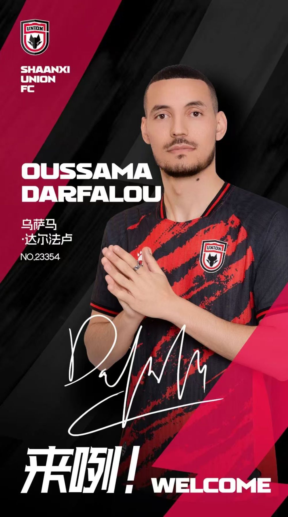 中甲联赛新军陕西联合足球俱乐部26日宣布,已经与阿尔及利亚籍球员乌萨马·达尔法卢签约。