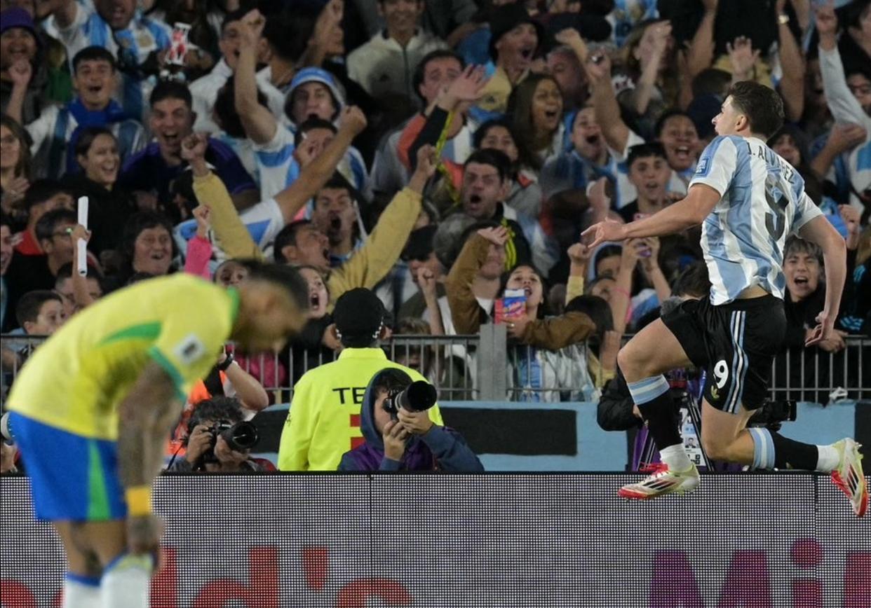 当地时间3月25日晚,在2026年美加墨世界杯南美区预选赛中,卫冕冠军阿根廷队4:1战胜巴西队,成为南美区首支直接晋级2026年美加墨世界杯的球队。